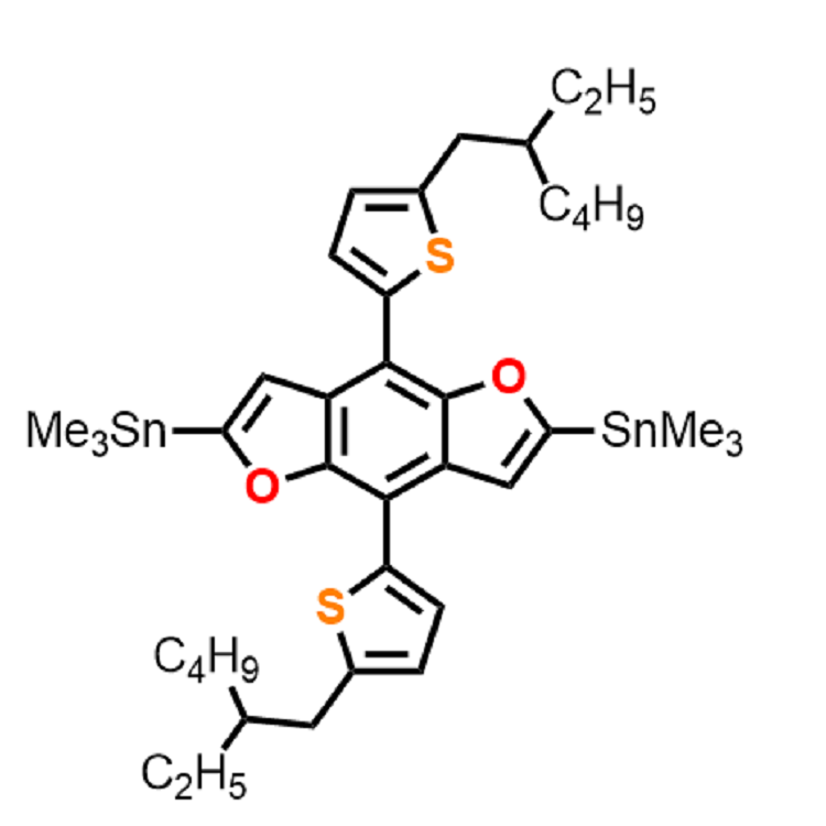 中文名稱:2,6-雙(三甲基錫)-4,8-雙-[5-(2-乙基己基)-噻吩基]苯并[1,2-b:4,5-b']二呋喃